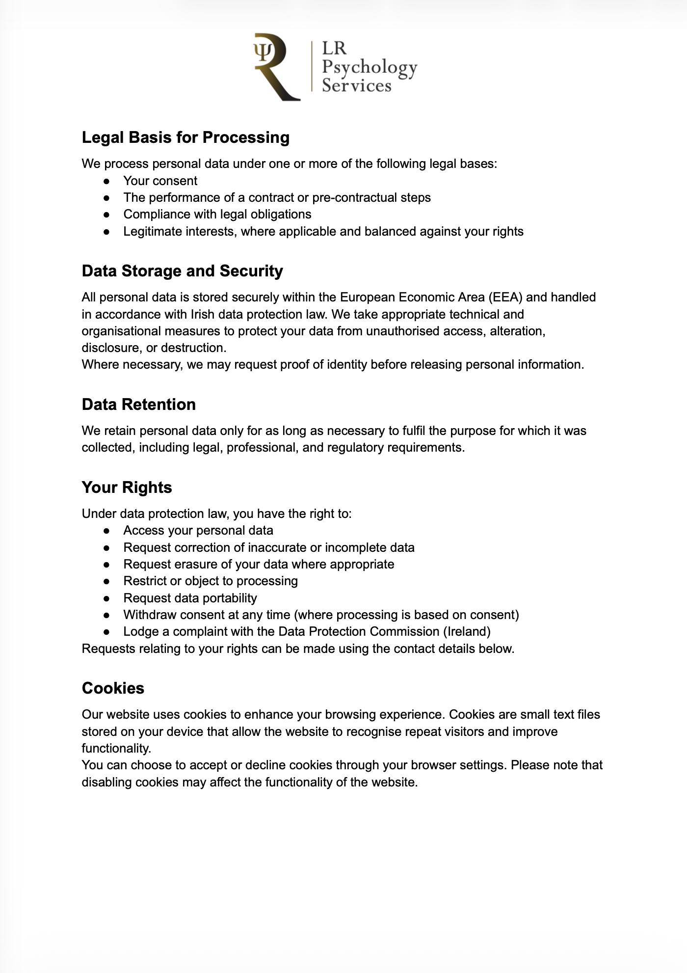 LR Psychology reports are accepted and recognised by the HSE, Department of Education and the Department of Social Welfare.